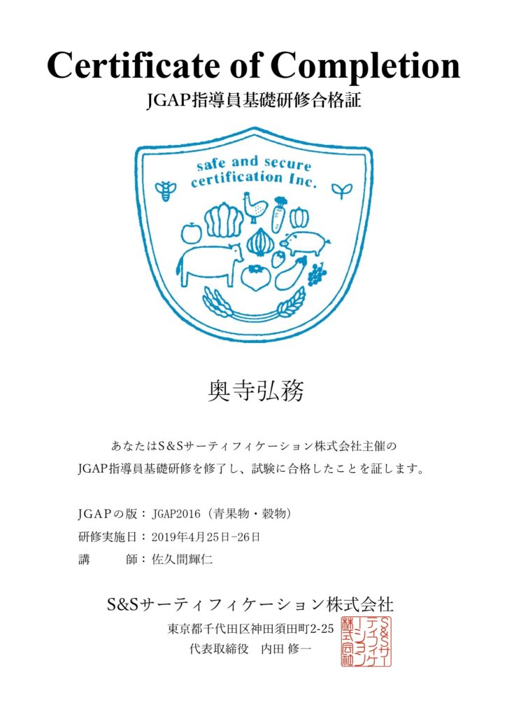 北海道旬直ではJGAP指導員の資格を取得しておりますので、JGAP取得を行なっていない農場に農場管理・農産物の生産履歴など食品事故が起きないように指導を行なっております。